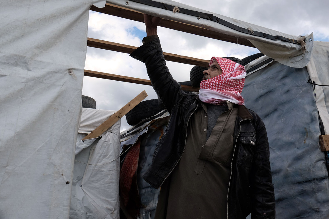 Strong winds blew the roof off the shelter that housed Yehia, a farmer from Syria, and his family.